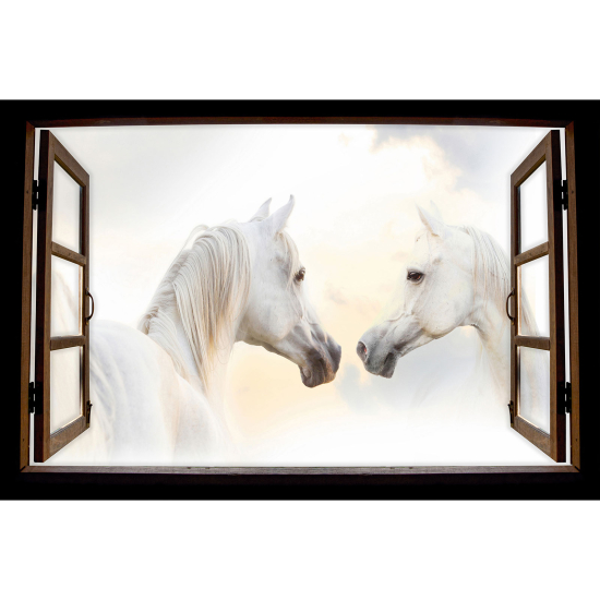 Adesivo Murale - Illusione ottica - Finestra in legno - Cavalli