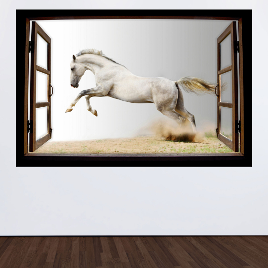Adesivo Murale - Illusione ottica - Finestra in legno - Cavallo