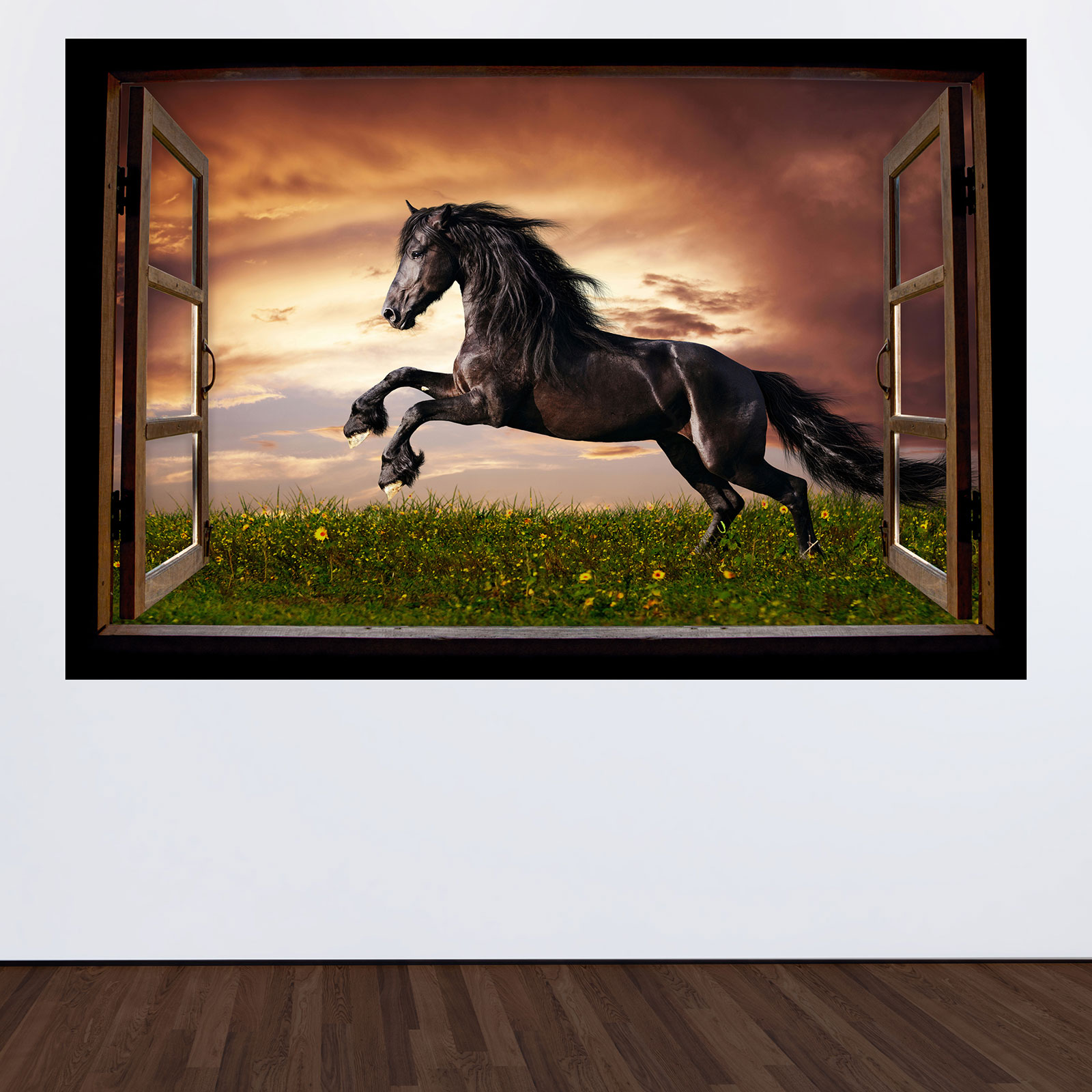 www.lumalea.it > Adesivi > Adesivi Murali Effetto 3D > Adesivi Murali Finestre in Legno > Adesivo Murale - Illusione ottica - Finestra in legno - Cavallo