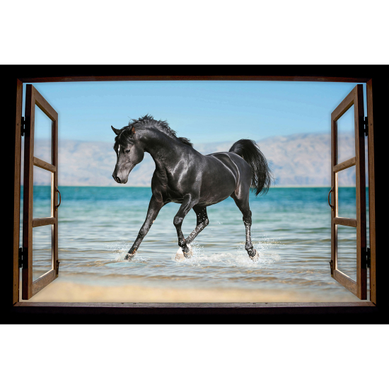 www.lumalea.it > Adesivi > Adesivi Murali Effetto 3D > Adesivi Murali Finestre in Legno > Adesivo Murale - Illusione ottica - Finestra in legno - Cavallo