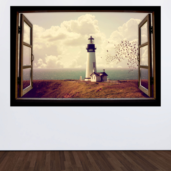 www.lumalea.it > Adesivi > Adesivi Murali Effetto 3D > Adesivi Murali Finestre in Legno > Adesivo Murale - Illusione ottica - Finestra in legno - Faro