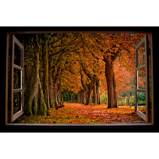 Adesivo Murale - Illusione ottica - Finestra in legno - Foresta