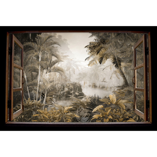 Adesivo Murale - Illusione ottica - Finestra in legno - Giungla
