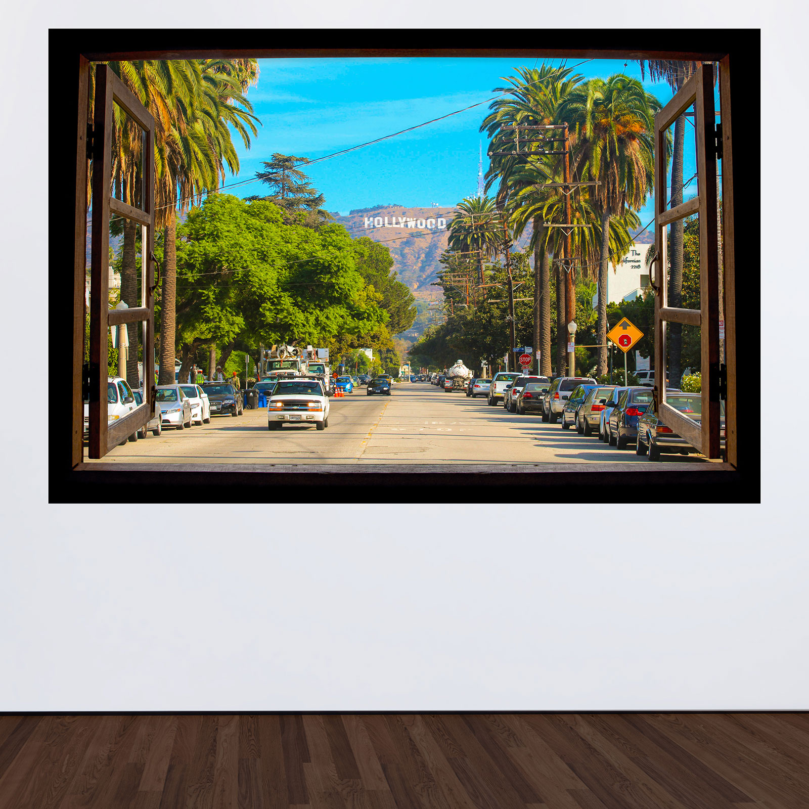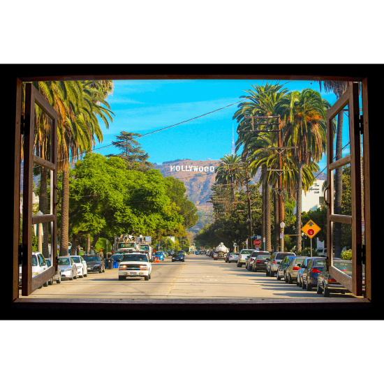 Adesivo Murale - Illusione ottica - Finestra in legno - Hollywood