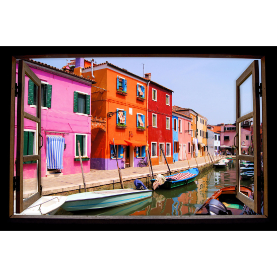 www.lumalea.it > Adesivi > Adesivi Murali Effetto 3D > Adesivi Murali Finestre in Legno > Adesivo Murale - Illusione ottica - Finestra in legno - Isola di Burano