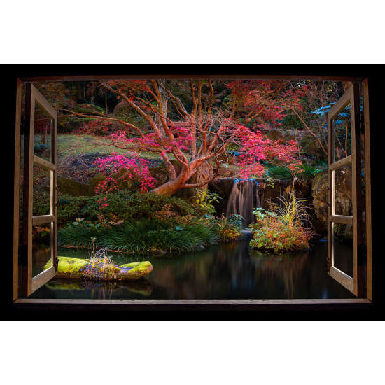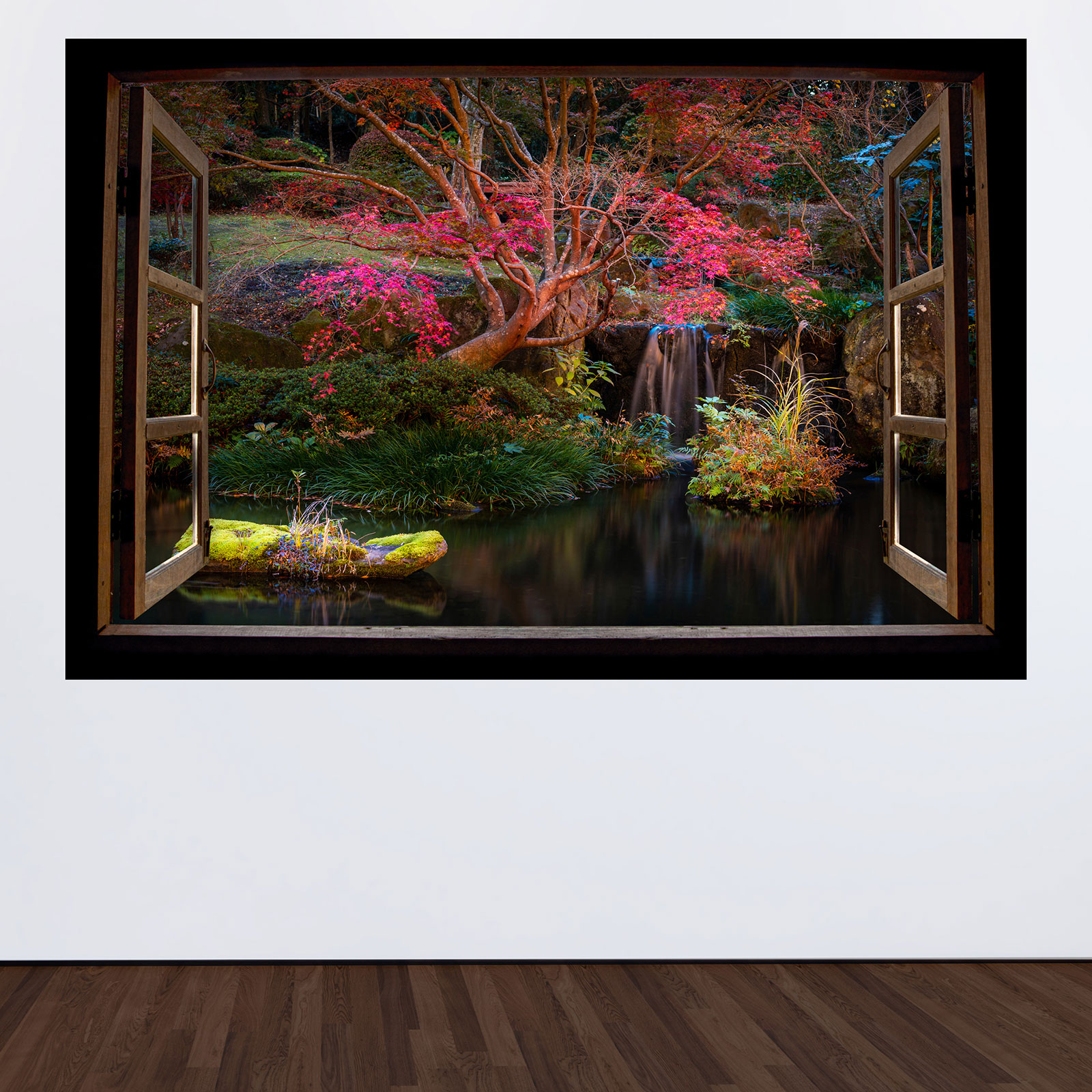 Adesivo Murale - Illusione ottica - Finestra in legno - Lago e alberi