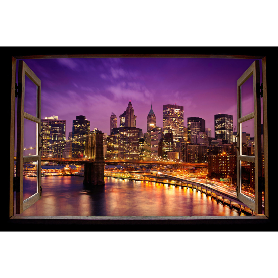 Adesivo Murale - Illusione ottica - Finestra in legno - New York