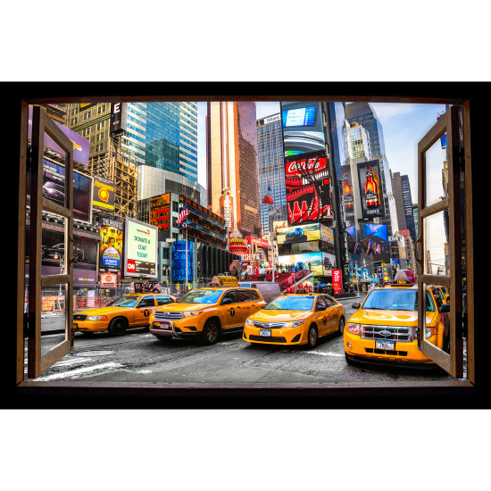 Adesivo Murale - Illusione ottica - Finestra in legno - New York
