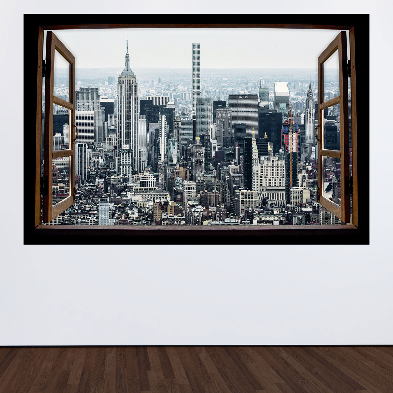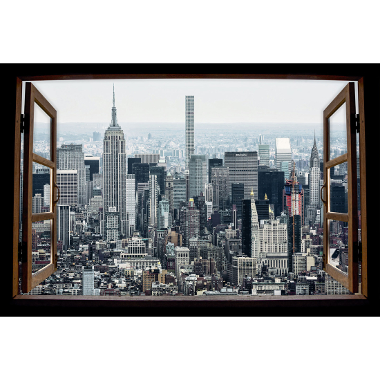 Adesivo Murale - Illusione ottica - Finestra in legno - New York