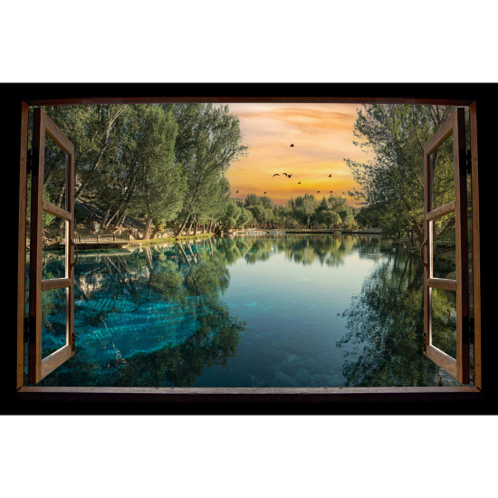 Adesivo Murale - Illusione ottica - Finestra in legno - Paesaggio