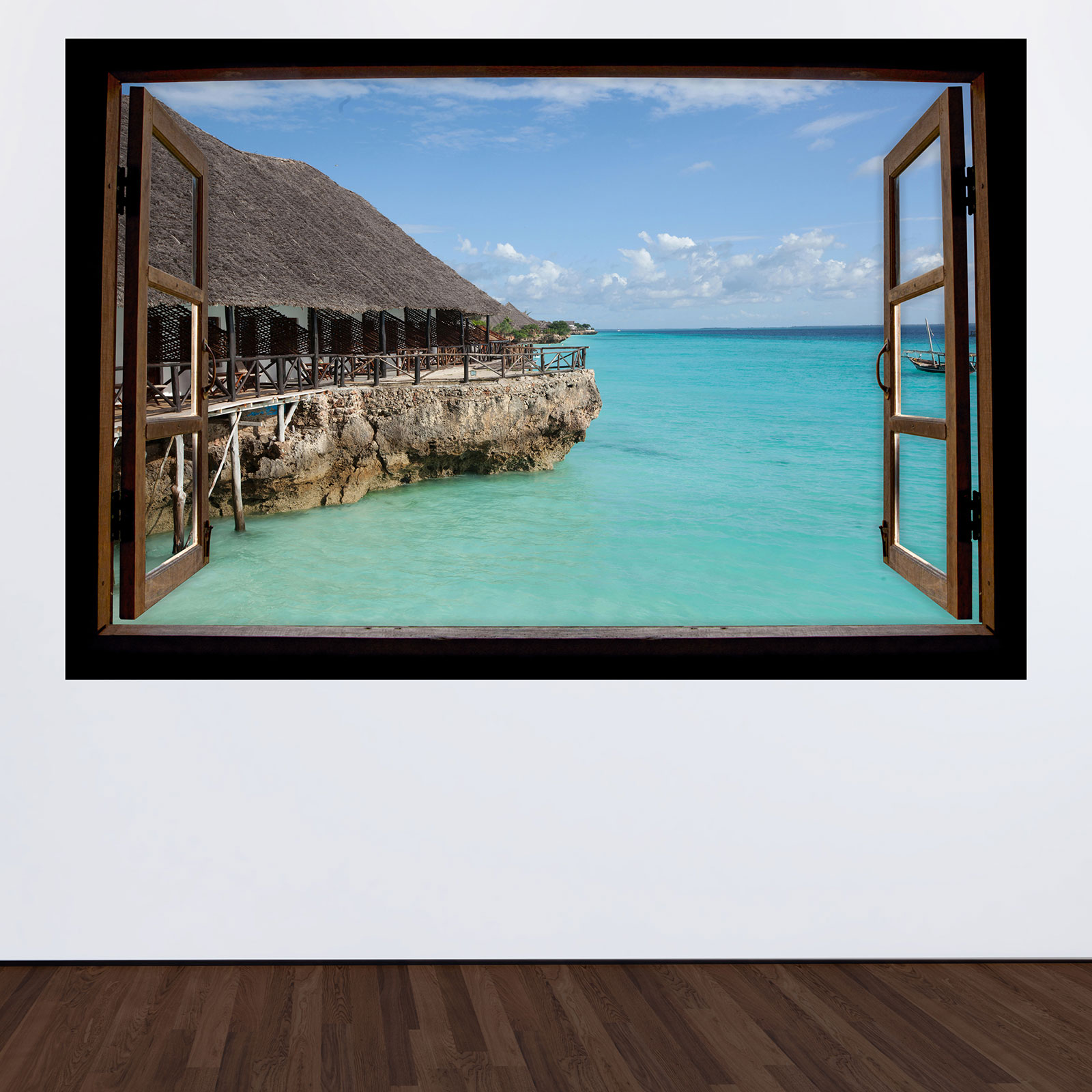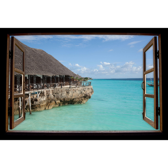 Adesivo Murale - Illusione ottica - Finestra in legno - Paradisiaco