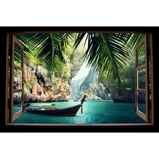 Adesivo Murale - Illusione ottica - Finestra in legno - Paradisiaco