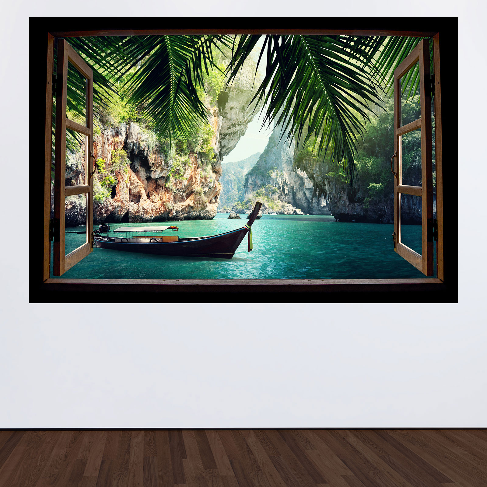 www.lumalea.it > Adesivi > Adesivi Murali Effetto 3D > Adesivi Murali Finestre in Legno > Adesivo Murale - Illusione ottica - Finestra in legno - Paradisiaco