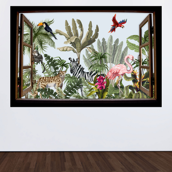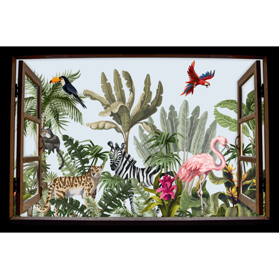 Adesivo Murale - Illusione ottica - Finestra in legno per Bambini - Giungla