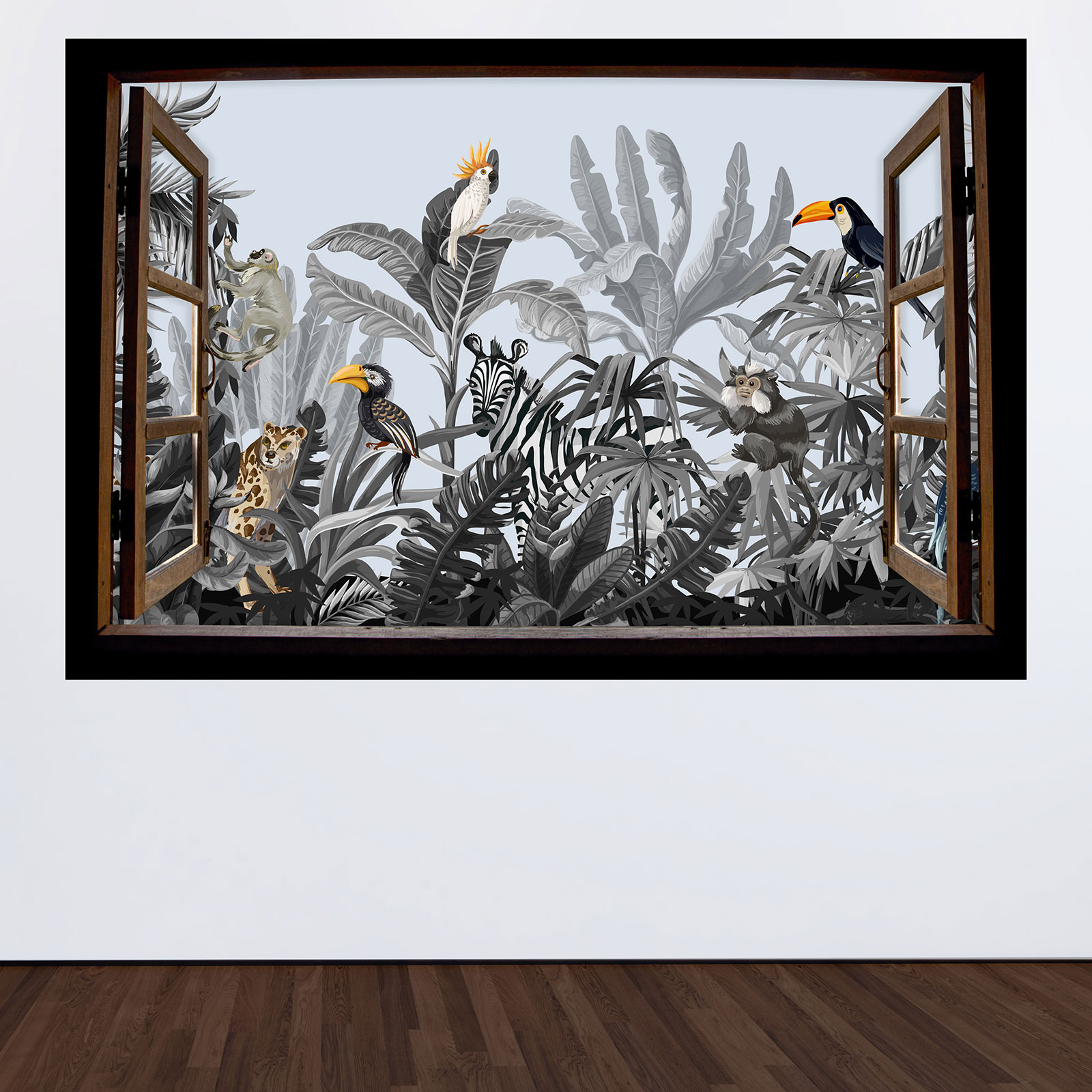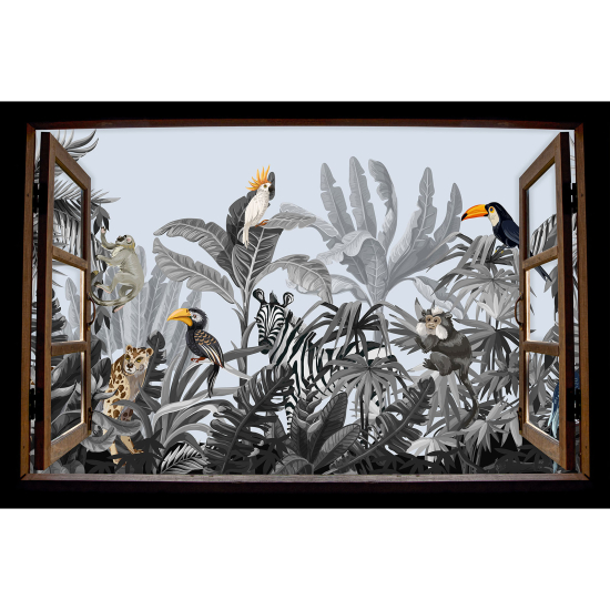Adesivo Murale - Illusione ottica - Finestra in legno per Bambini - Giungla