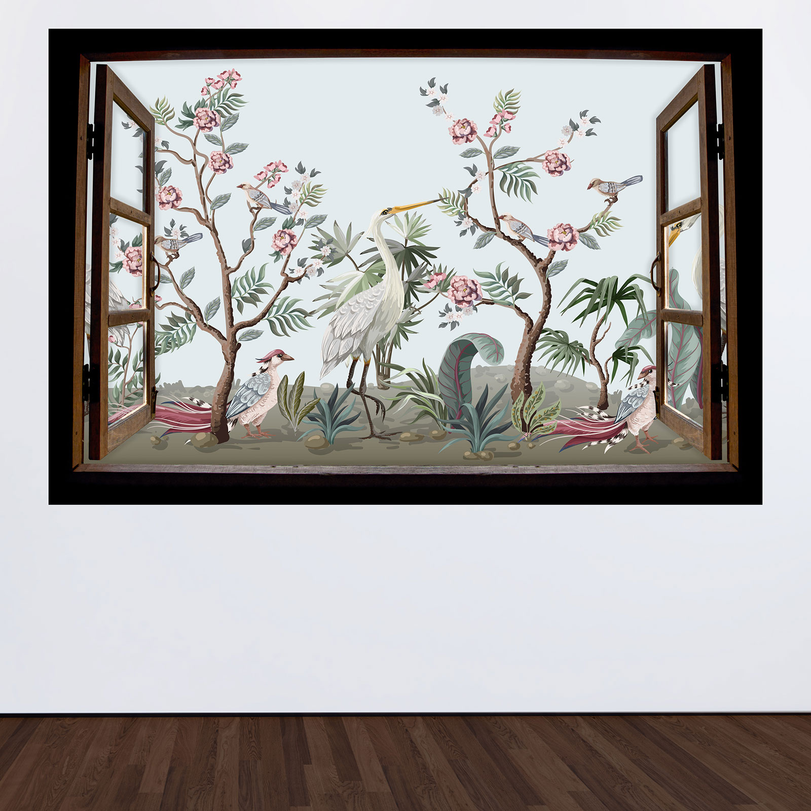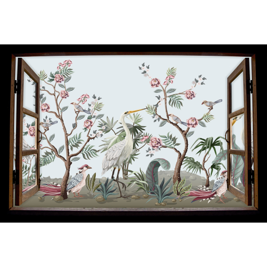 Adesivo Murale - Illusione ottica - Finestra in legno per Bambini - Giungla