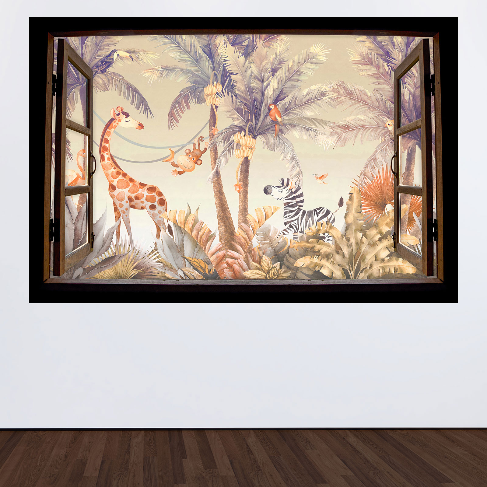 Adesivo Murale - Illusione ottica - Finestra in legno per Bambini - Giungla