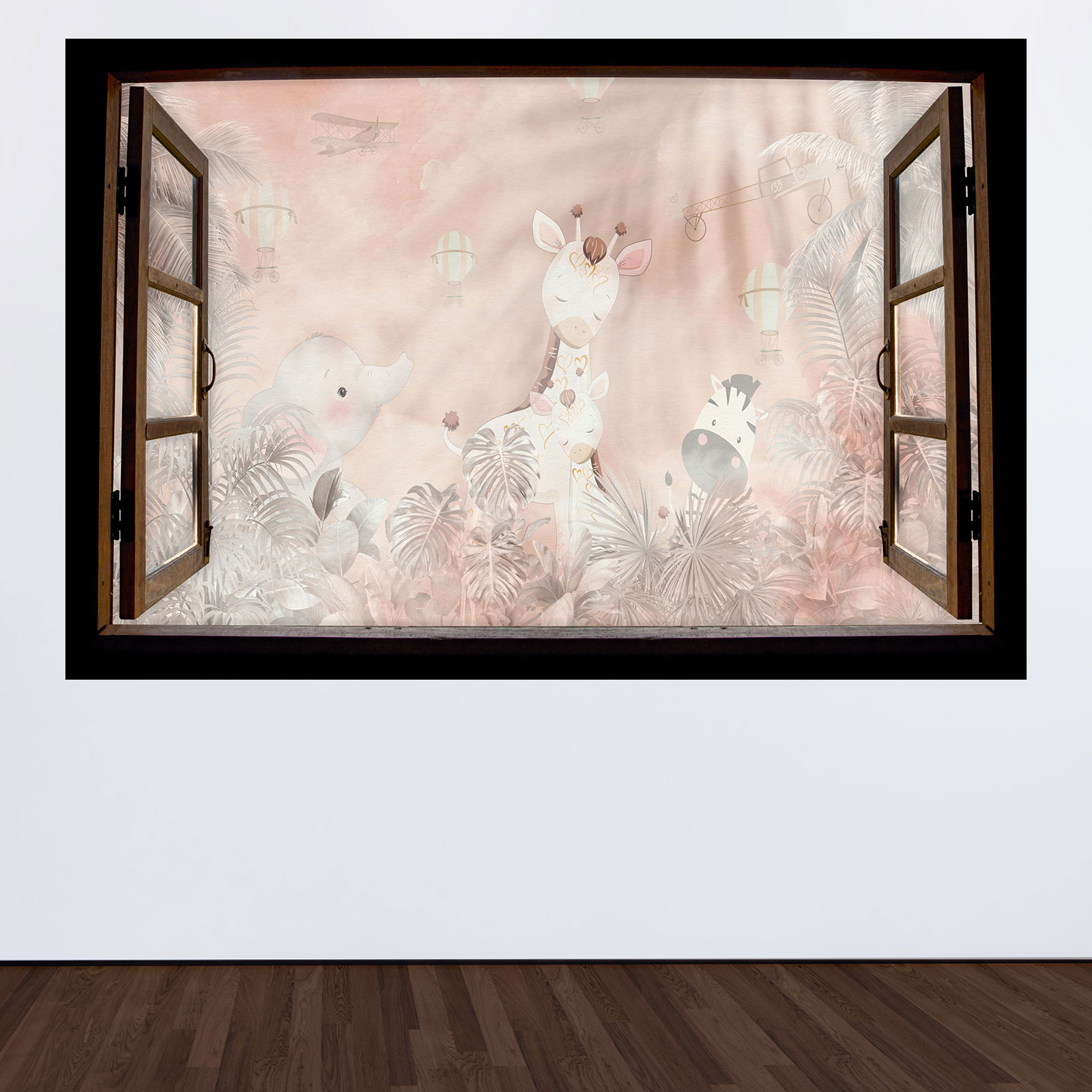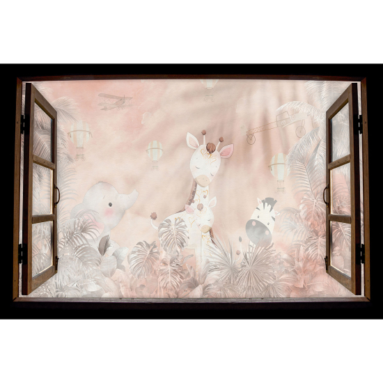 Adesivo Murale - Illusione ottica - Finestra in legno per Bambini - Giungla
