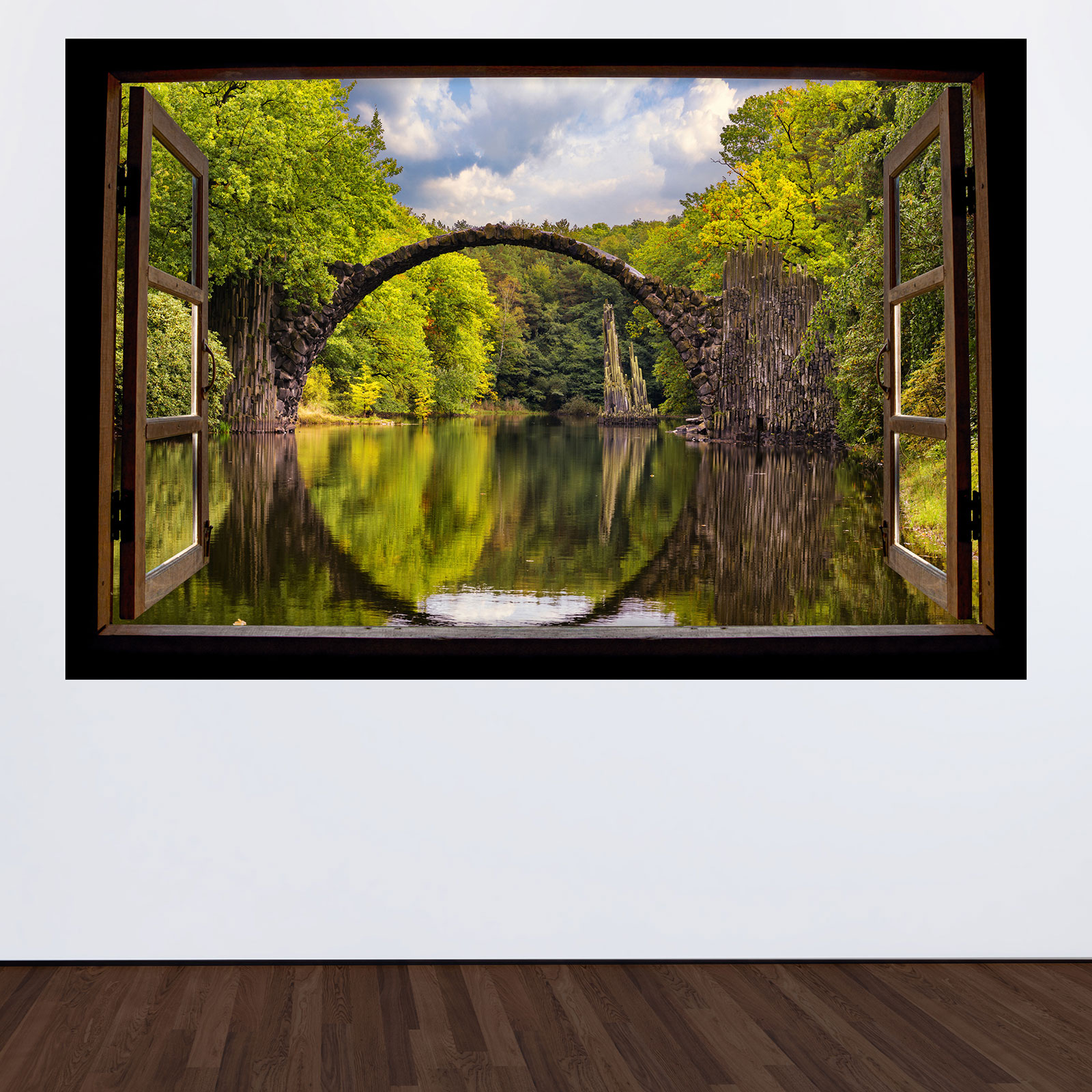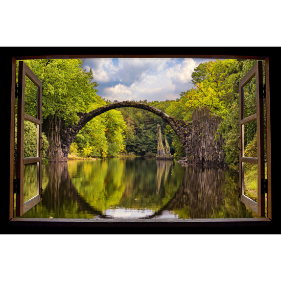 Adesivo Murale - Illusione ottica - Finestra in legno - Ponte del Diavolo