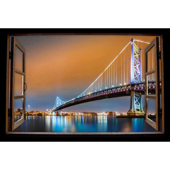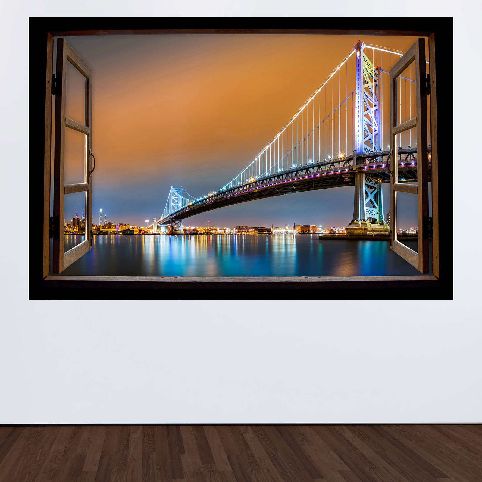 Adesivo Murale - Illusione ottica - Finestra in legno - Ponte di Brooklyn