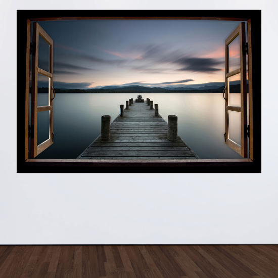Adesivo Murale - Illusione ottica - Finestra in legno - Pontone