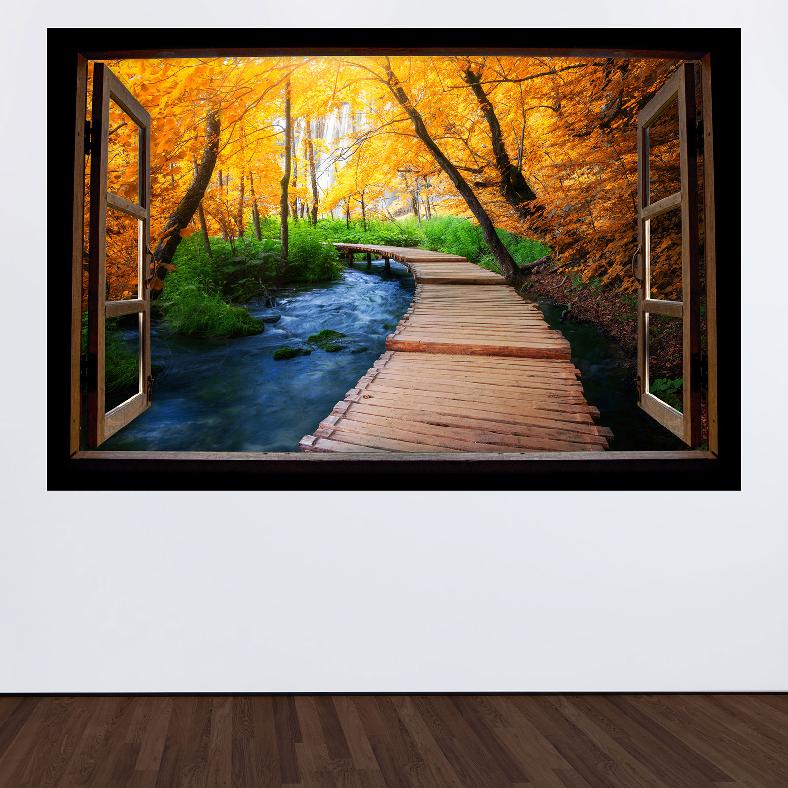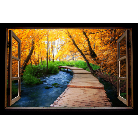 Adesivo Murale - Illusione ottica - Finestra in legno - Pontone foresta