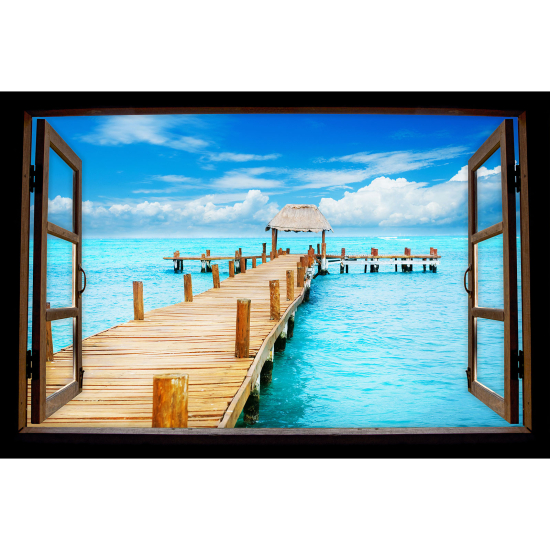 Adesivo Murale - Illusione ottica - Finestra in legno - Pontone paradisiaco