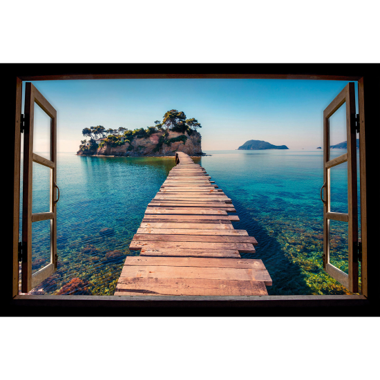 Adesivo Murale - Illusione ottica - Finestra in legno - Pontone paradisiaco
