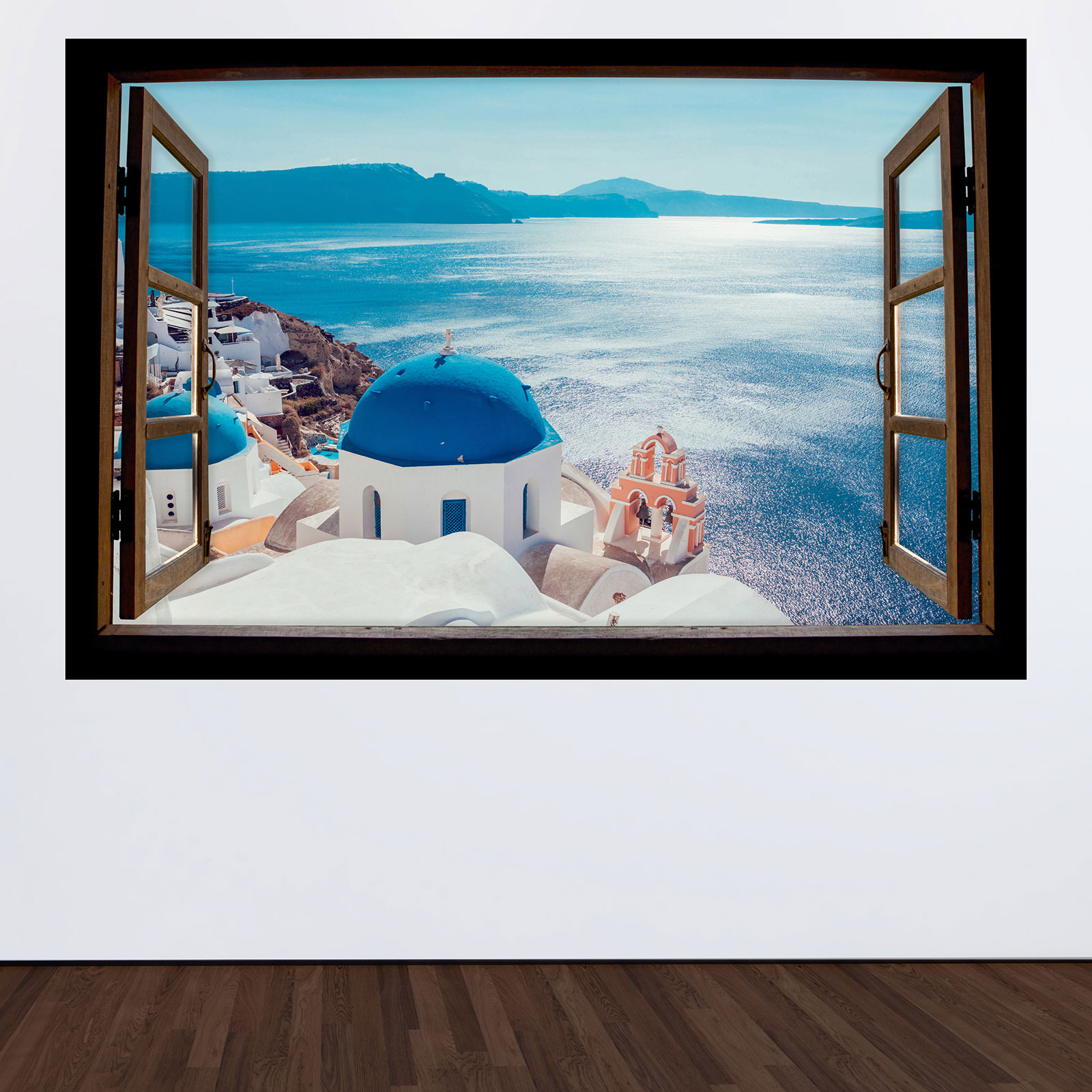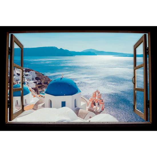 www.lumalea.it > Adesivi > Adesivi Murali Effetto 3D > Adesivi Murali Finestre in Legno > Adesivo Murale - Illusione ottica - Finestra in legno - Santorini