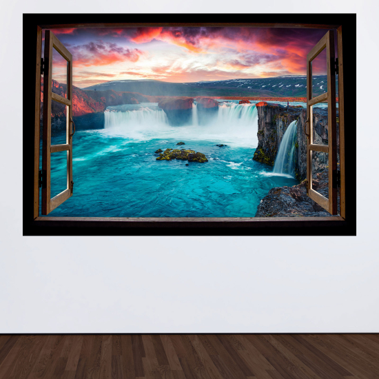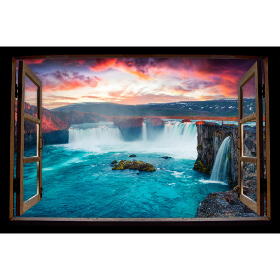 Adesivo Murale - Illusione ottica - Finestra in legno - Scogliere