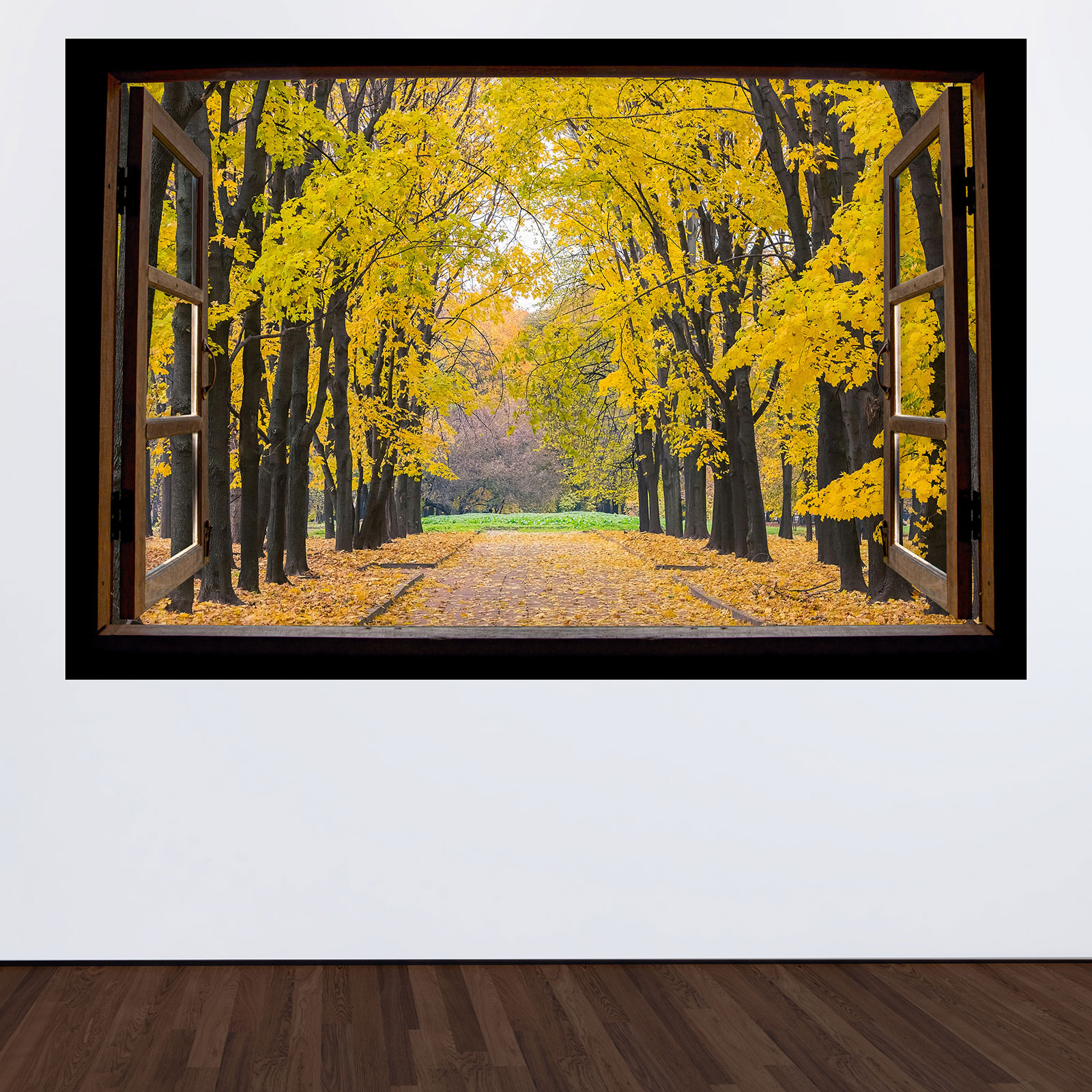 Adesivo Murale - Illusione ottica - Finestra in legno - Sentiero foresta