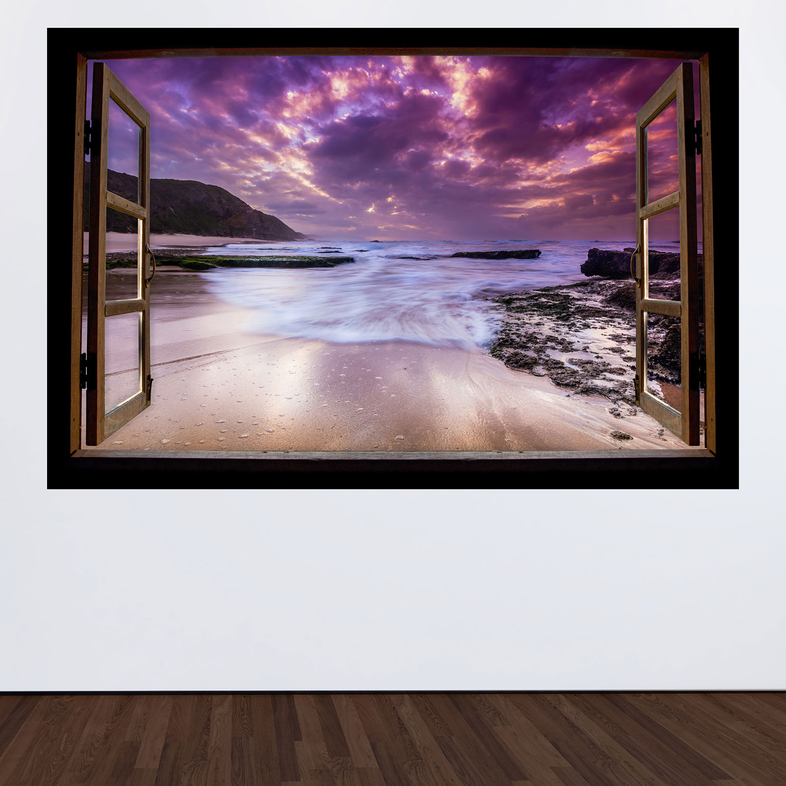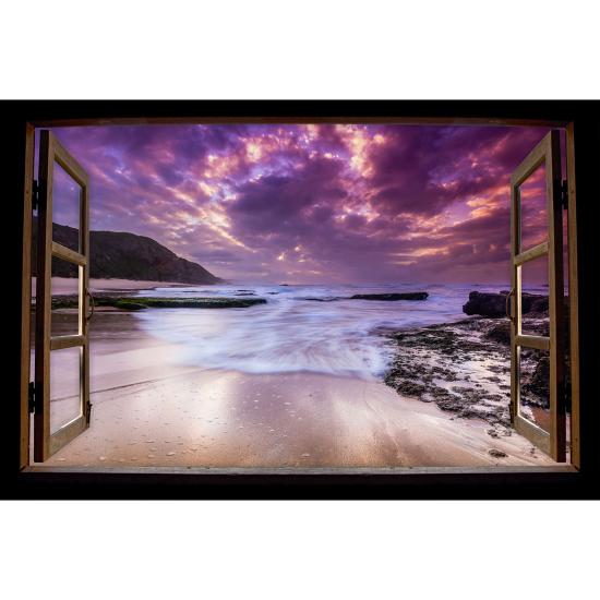 Adesivo Murale - Illusione ottica - Finestra in legno - Spiaggia