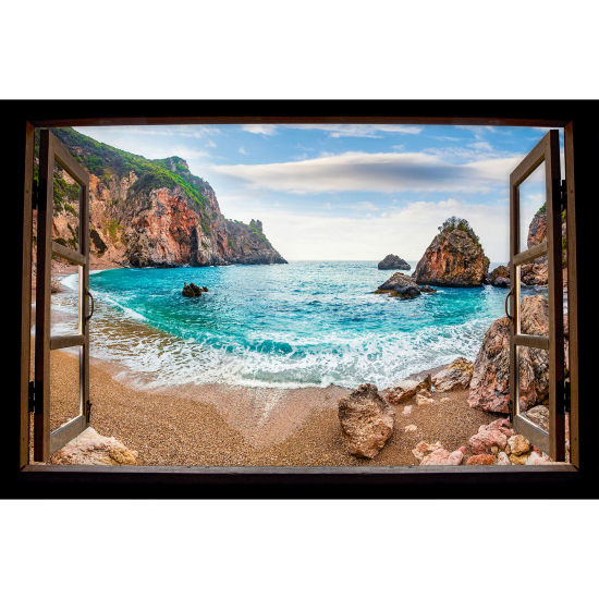 Adesivo Murale - Illusione ottica - Finestra in legno - Spiaggia