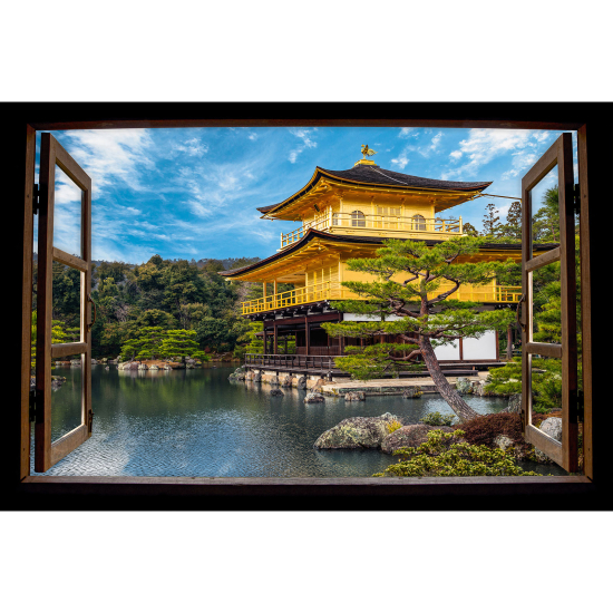 Adesivo Murale - Illusione ottica - Finestra in legno - Tempio