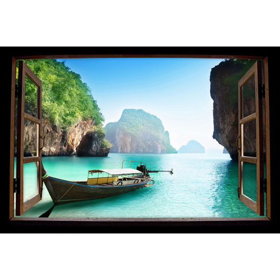 Adesivo Murale - Illusione ottica - Finestra in legno - Thailandia