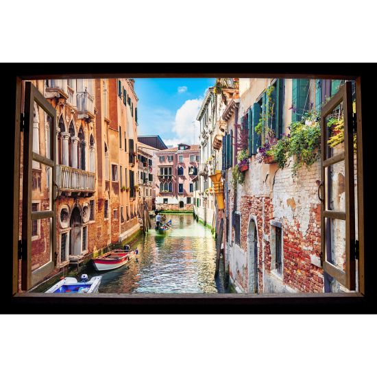 www.lumalea.it > Adesivi > Adesivi Murali Effetto 3D > Adesivi Murali Finestre in Legno > Adesivo Murale - Illusione ottica - Finestra in legno - Venezia