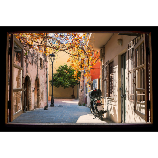 www.lumalea.it > Adesivi > Adesivi Murali Effetto 3D > Adesivi Murali Finestre in Legno > Adesivo Murale - Illusione ottica - Finestra in legno - Vicolo