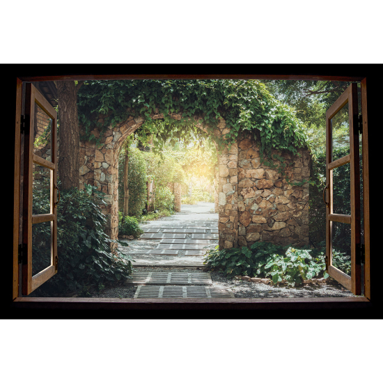 Adesivo Murale - Illusione ottica - Finestra in legno - Vicolo