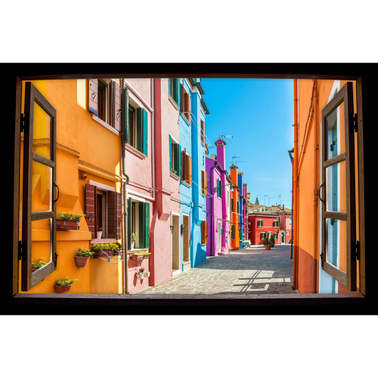 Adesivo Murale - Illusione ottica - Finestra in legno - Vicolo Burano