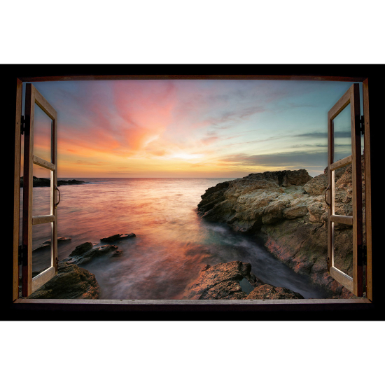 Adesivo Murale - Illusione ottica - Finestra in legno - Vista mare