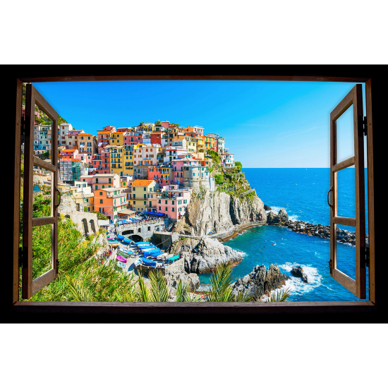 Adesivo Murale - Illusione ottica - Finestra in legno - Vista mare