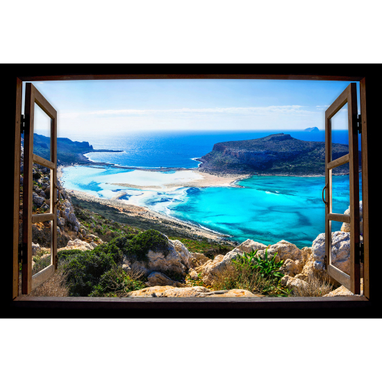 Adesivo Murale - Illusione ottica - Finestra in legno - Vista mare