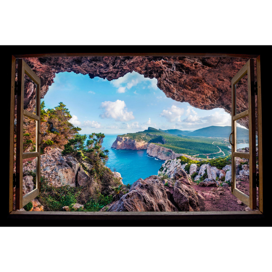 Adesivo Murale - Illusione ottica - Finestra in legno - Vista mare