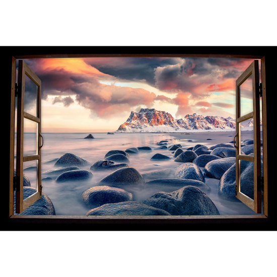 www.lumalea.it > Adesivi > Adesivi Murali Effetto 3D > Adesivi Murali Finestre in Legno > Adesivo Murale - Illusione ottica - Finestra in legno - Vista mare