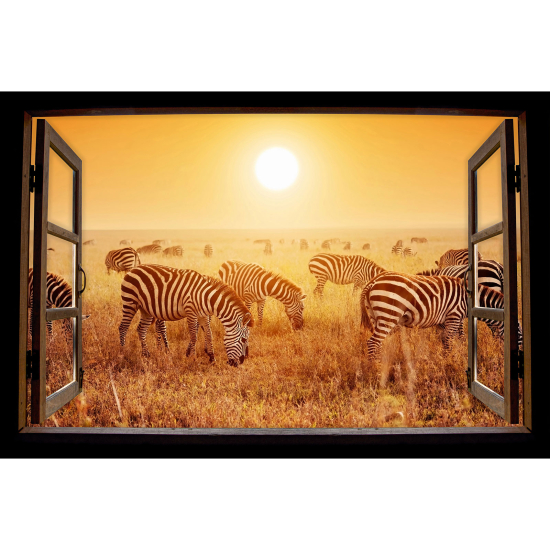 Adesivo Murale - Illusione ottica - Finestra in legno - Zebre