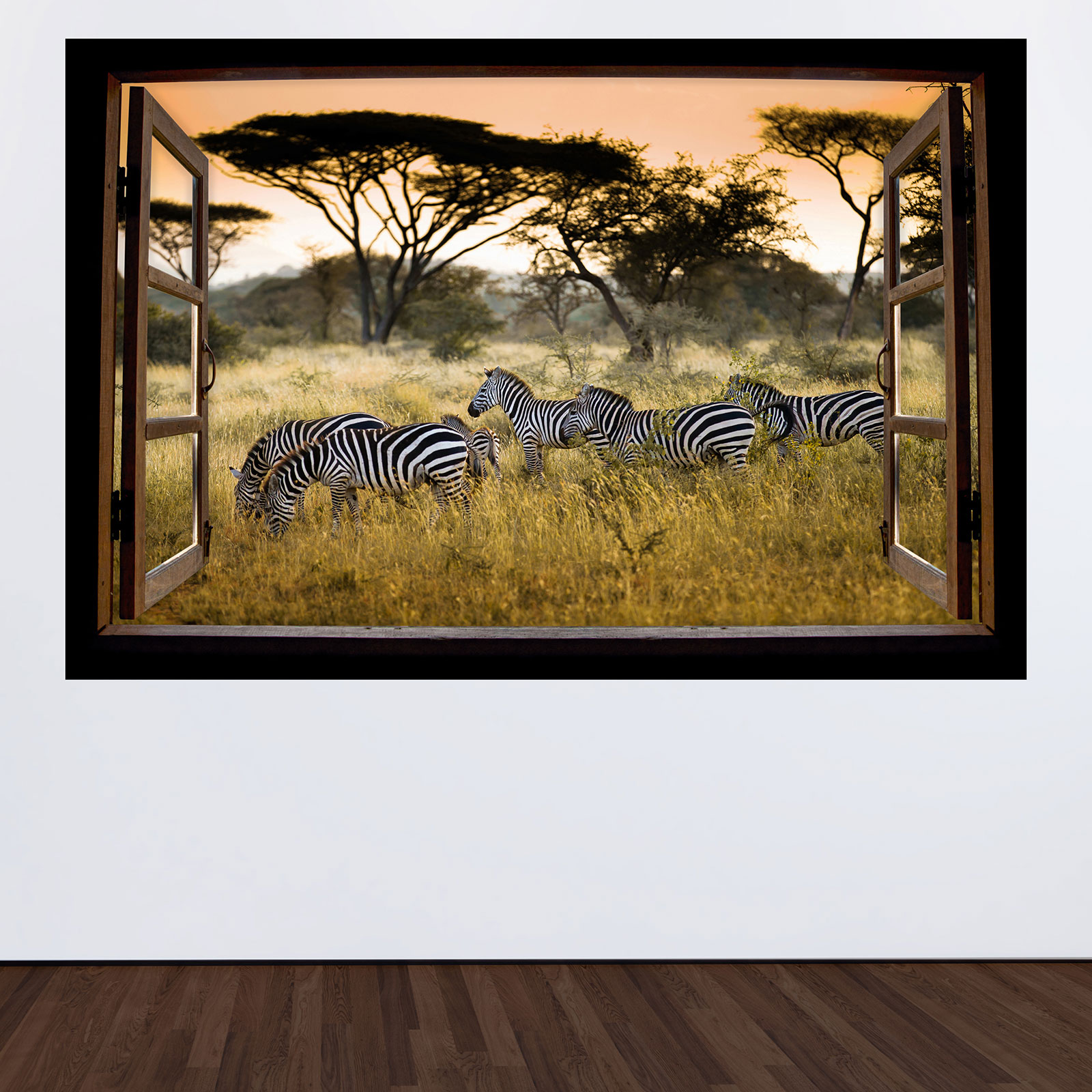 Adesivo Murale - Illusione ottica - Finestra in legno - Zebre