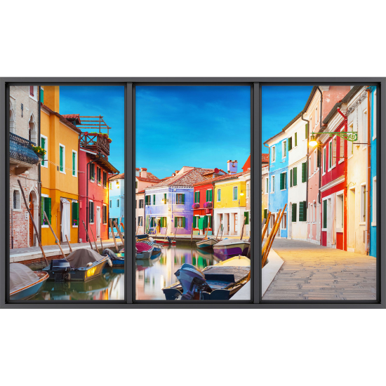 www.lumalea.it > Adesivi > Adesivi Murali Effetto 3D > Adesivi Murali Finestre in Alluminio > Adesivo Murale - Illusione ottica - Finestra - Isola di Burano
