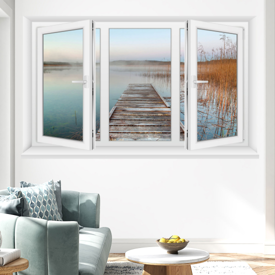 Adesivo Murale - Illusione ottica - Finestra - Lago e pontile