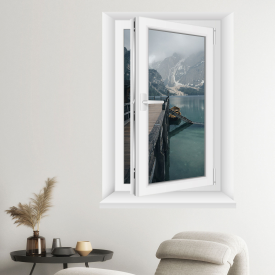 Adesivo Murale - Illusione ottica - Finestra - Lago Montagne