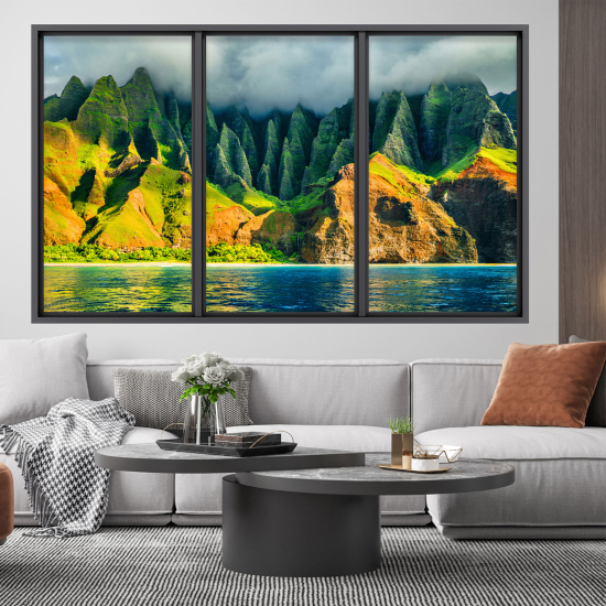 Adesivo Murale - Illusione ottica - Finestra - Montagne
